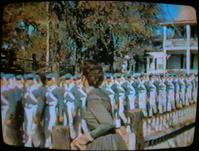 As COLOSSAL proceeds and it is evident that Costa is mixing the naturalistic gait and words of Vanda with Ventura's more stoic exchanges, Vanda and her room begin look like a mixture of Walter Brennan/Monument Valley and one of Godard's TV documentaries. Ford often mixed acting styles and tones (MY DARLING CLEMENTINE, THE LONG GRAY LINE, 7 WOMEN), contrasting the colloquial and homespun with the grand responsibilites and fates of a new landscape. And Godard has been one of the only ones to convey and critique the din of domestic TV presence by means of the cinema, to discover the labyrith of social relations created by a blarring TV (NUMERO DEUX, FRANCE/TOUR/DETOUR/DEUX/ENFANTS).