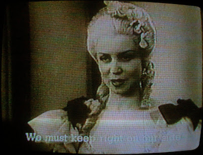 In La Marseillaise, Renoir has Antoinette always bitterly affected, harrassed and harassing, stung by her own insatiability, a frigid enforcer of royal code and appearances (she is brilliantly played by Lise Delamare). Her only love scene is with this man, of the Royal Guard, just before the Marseillais storm the palace: