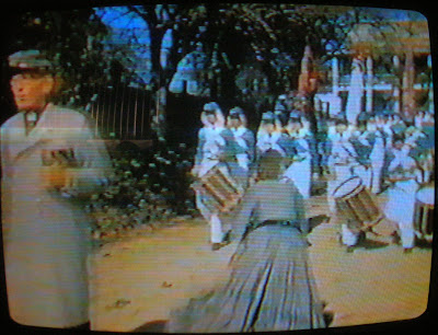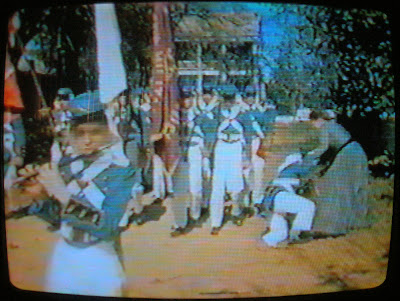 The Royal Guard at the gates are won over, not by the guns of the rebels, but by fraternity and common enemy. This is also the story of New Babylon (Trauberg/Kosintzev, 1929), people going to the other side; Jean, a Versailles soldier, deserts the army which is suppressing the Paris Commune. He is brought to consciousness by conditions ("no more milk!") and by his lover, Louis (Elena Kuzmina, pictured above). But Jean comes to consciousness too slowly, too late. He walks as slow as anyone ever has walked in the cinema, across the cobblestones, all his fellow deserters, horses even, pass him by. He'll be forced at gunpoint to bury his freshly executed lover in the mud: the massacre of the Communards. She is dead and the Commune goes with her, but the film ends in chalk: VIVE LA COMMUNE.