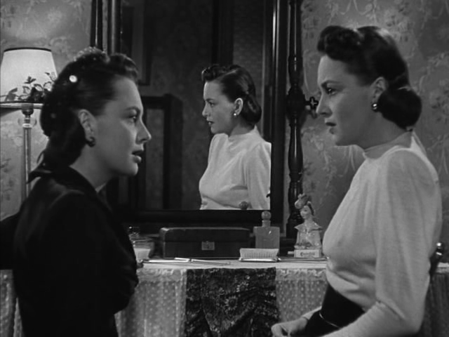 Los Angeles: playing tonight at the Egyptian theater: the extraordinary THE DARK MIRROR by Robert Siodmak. A symphony of interior grays (as with all Siodmak), an astonishing double role - and roll: Olivia de Havilland plays twin sisters through Milton Krasner's trick cinematography. All codes of cinema are questioned by this film. The medium shot psychoanalyzes the close-up (two divided by one, which was already one), and the close-up the reverse shot. A film that makes you think twice with every composition.